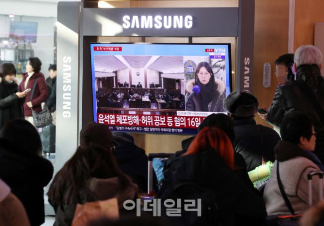 14일 오전 서울 중구 서울역 대합실에서 시민들이 윤석열 전 대통령 사형 구형에 관한 뉴스를 시청하고 있다. 특검은 12·3 비상계엄 관련 내란 우두머리 혐의를 받는 윤석열 전 대통령에 사형을 구형했으며 선고기일은 2월 19일 오후 3시 서울중앙지법 417호 대법정에서 열린다.