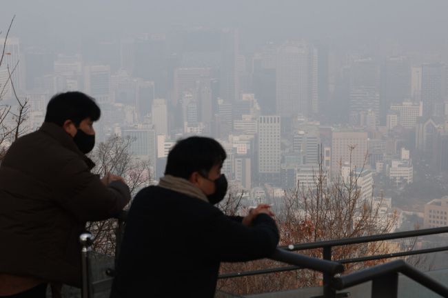 미세먼지 농도가 ‘나쁨’ 초미세먼지 농도가 ‘매우 나쁨’ 수준을 보인 16일 오전 서울 중구 남산에서 바라본 서울 시내가 미세먼지로 뿌옇다. 최현수 기자 emd@hani.co.kr 16일 짙은 미세먼지가 전국을 뒤덮었다. 국립환경과학원과 기상청 등에 따르면, 중국 등지에서 유입된 미세먼지와 내몽골고원에서 발원한 황사가 우리나라로 들어온 후 대기 정체로 빠져