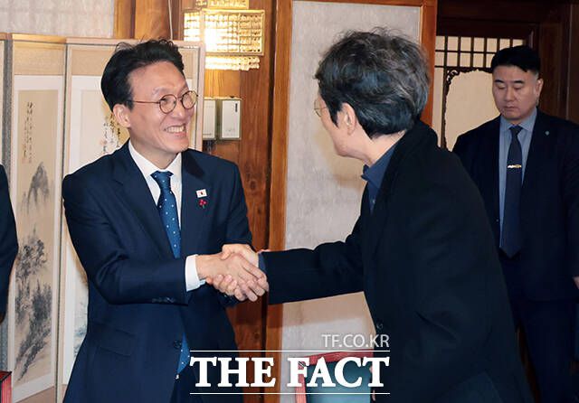 김민석 국무총리(왼쪽)가 20일 오후 서울 종로구 삼청동 총리공관에서 열린 연극인 간담회에 참석해 배우 문성근과 인사를 나누고 있다. <사진=청사사진기자단> darkroom@tf.co.kr 사진영상기획부 photo@tf.co.kr 발로 뛰는 더팩트는 24시간 여러분의 제보를 기다립니다. ▶카카오톡: '더팩트제보' 검색 ▶이메일: jebo@tf.co.kr ▶
