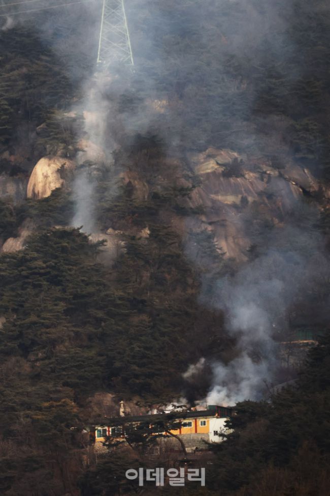 26일 오전 서울 노원구 수락산에서 산불이 발생하고 있다.