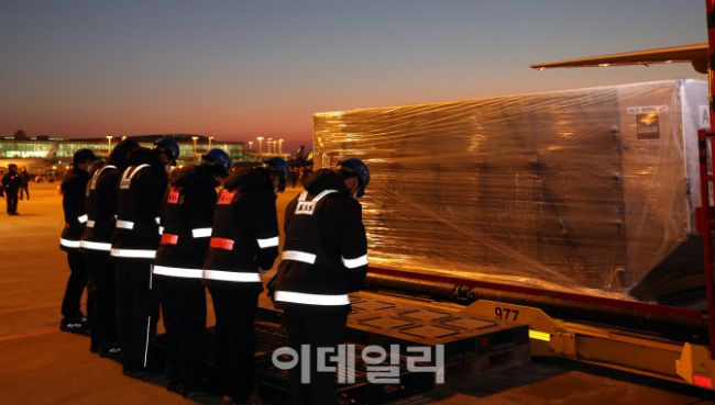 [공항사진기자단] 베트남 출장 중 심근경색으로 쓰러져 별세한 이해찬 민주평화통일자문회의 수석부의장의 시신이 27일 오전 인천국제공항에 도착하고 있다.