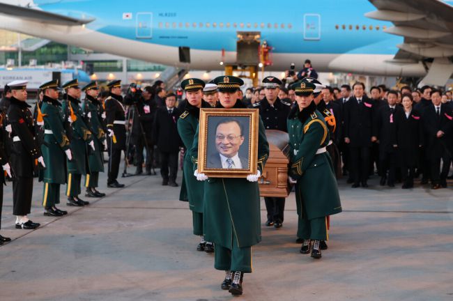 이해찬 민주평화통일자문회의 수석부의장의 시신이 27일 아침 인천국제공항에 도착해 서울 종로구 서울대학교병원 장례식장으로 운구되고 있다. 김혜윤 기자 unique@hani.co.kr 베트남 출장 중 별세한 이해찬 전 국무총리의 시신이 27일 아침 인천국제공항에 도착해 서울대병원 장례식장으로 운구됐다. 공항에서 우원식 국회의장과 김민석 국무총리 및 더불어민주당