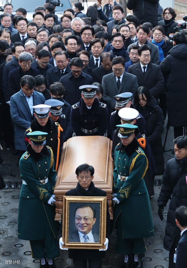 베트남 출장 중 별세한 이해찬 민주평화통일자문회의 수석부의장의 시신이 27일 서울 종로구 서울대병원 장례식장으로 운구되고 있다. 이 수석부의장의 장례는 오는 31일까지 닷새간 기관·사회장으로 엄수된다. 성동훈 기자 zenism@kyunghyang.com ▶ 매일 라이브 경향티비, 재밌고 효과빠른 시사 소화제! ▶ 더보기|이 뉴스, 여기서 끝나지 않습니다 →