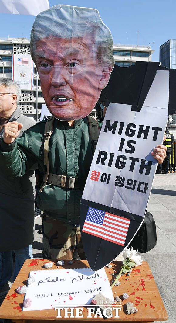 트럼프 이란 침공 규탄하는 참가자 [포토]