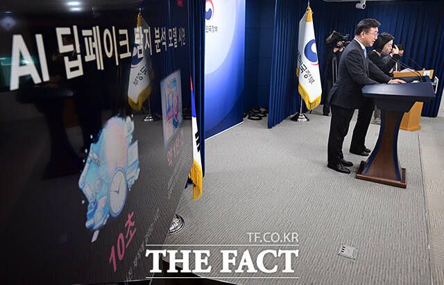 윤호중 행정안전부 장관이 10일 오후 서울 종로구 정부서울청사에서 AI 기반 딥페이크 탐지 분석 모델 개발과 관련해 발언을 하고 있다. darkroom@tf.co.kr 사진영상기획부 photo@tf.co.kr 발로 뛰는 더팩트는 24시간 여러분의 제보를 기다립니다. ▶카카오톡: '더팩트제보' 검색 ▶이메일: jebo@tf.co.kr ▶뉴스 홈페이지: htt