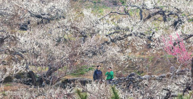 상춘객들이 12일 전남 광양시 다압면 매화마을에서 흐드러진 봄기운을 만끽하고 있다. 13일부터 광양매화축제가, 14일부터 구례산수유꽃축제가 열린다. 한수빈 기자 subinhann@kyunghyang.com ▶ 매일 라이브 경향티비, 재밌고 효과빠른 시사 소화제! ▶ 더보기|이 뉴스, 여기서 끝나지 않습니다 → 점선면 ©경향신문(www.khan.co.kr),