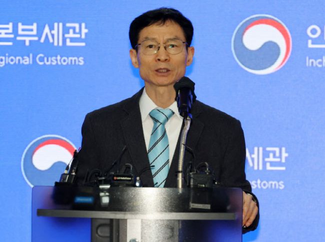 전성배 인천공항본부세관 조사국장이 17일 인천 중구 인천공항본부세관 수출입통관청사에서 국내 항정신성 마약 MDMA(엑스터시) 제조 시설 적발 및 유통일당 검거와 관련 브리핑을 하고 있다. 관세청 인천공항세관은 마약류 원료물질을 밀수입해 국내에서 MDMA를 제조한 베트남 국적 마약조직원 3명을 마약류 관리에 관한 법률 위반 혐의로 검거, 구속 송치했다고 밝혔