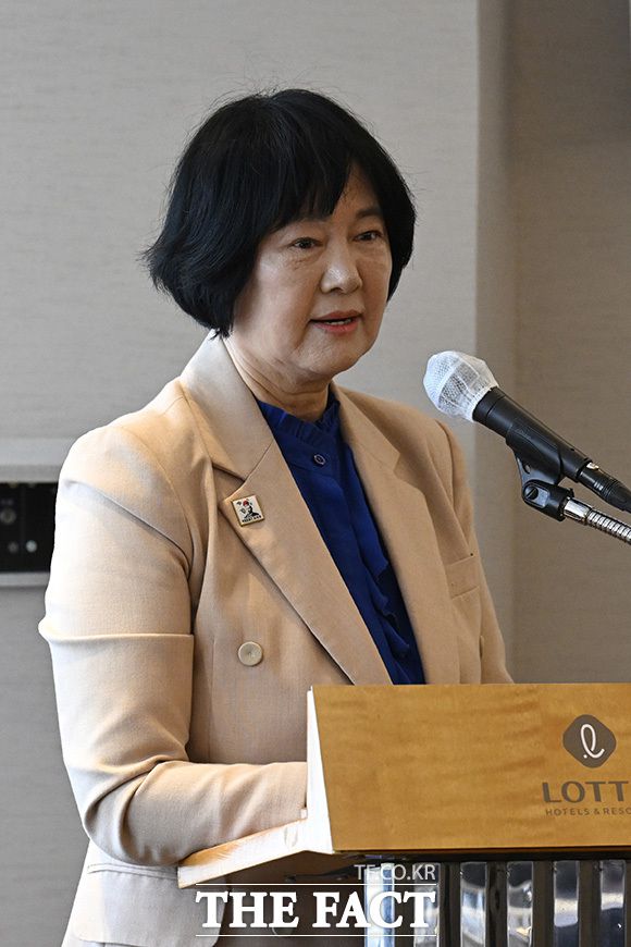 문영숙 최재형기념사업회 이사장이 26일 오전 서울 중구 롯데호텔 서울에서 열린 최재형기념사업회 기금후원회 발기인 대회에 참석해 인사말을 하고 있다. 이날 최재형기념사업회는 기금 후원회 발족식을 가지고 향후 사업의 진행 방향을 설명했다. 행사에는 기금 후원회장인 정석현 수산그룹 회장(국내)과 박종범 월드OKTA 회장(해외)을 필두로 정세균 전 국무총리, 김형