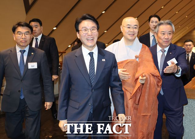 김민석 국무총리가 20일 오후 서울 중구 신라호텔에서 열린 불기 2570년 대한민국 불교도 봉축대법회에 참석하고 있다. 한국불교종단협의회는 이날 신라호텔에서 불기2570년 대한민국 불교도 봉축대법회를 봉행했다. 이날 행사에는 조계종 원로회의 의장 자광대종사 등 불교 지도자를 비롯해 김민석 국무총리, 전성환 대통령실 경청통합수석, 정청래 더불어민주당 대표,