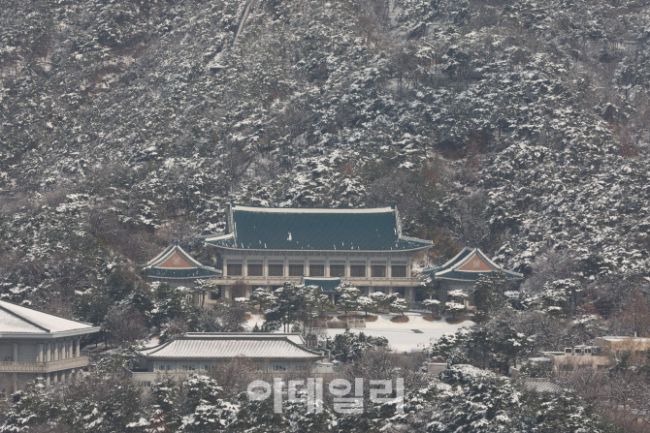 눈이 내린 18일 서울 종로구 청와대에 눈이 쌓여 있다.
