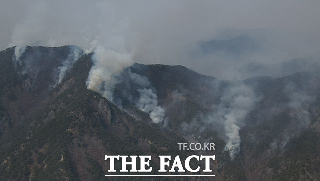 의성 산불이 발생한지 5일째를 맞은 26일 오후 경북 청송군 주왕산면 주왕산 국립공원 일대에 연기가 피어 오르고 있다. cjg05023@tf.co.kr 사진영상기획부 photo@tf.co.kr 발로 뛰는 더팩트는 24시간 여러분의 제보를 기다립니다. ▶카카오톡: '더팩트제보' 검색 ▶이메일: jebo@tf.co.kr ▶뉴스 홈페이지: http://talk.