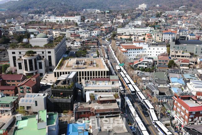 [포토]윤석열 대통령 탄핵심판 앞두고 헌재 인근 통제