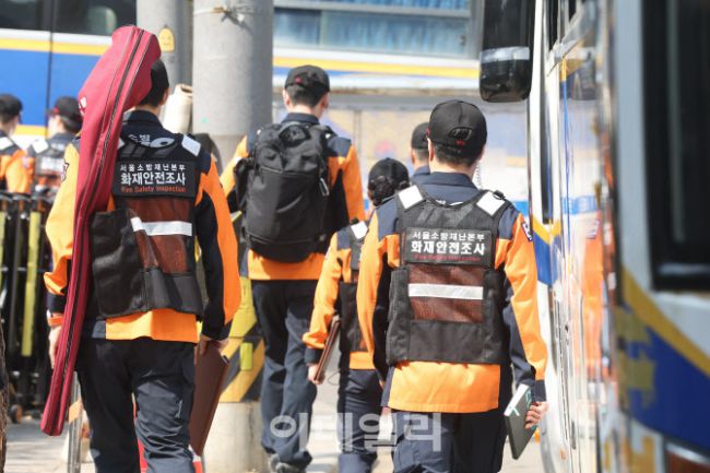 [포토]헌법재판소 인근 화재점검하는 소방관