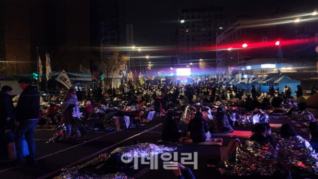 [포토]새벽 2시에도 인파 북적 D-day 헌재 인근