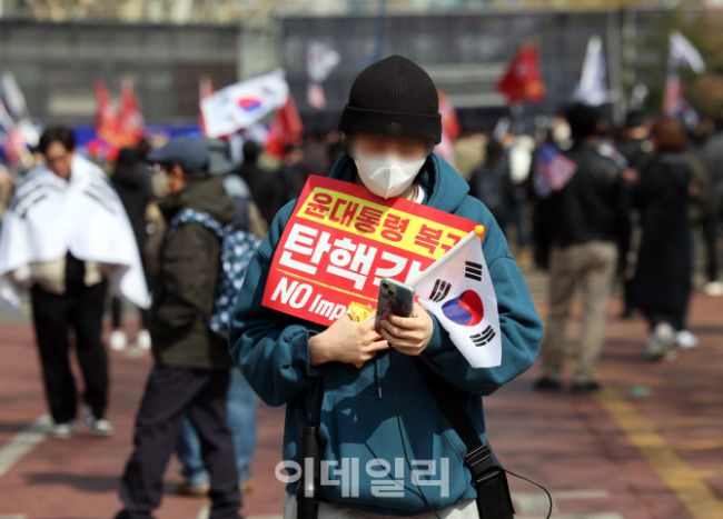 [포토]탄핵 선고 앞두고 긴장감 고조, '尹 지지자들 헌재 인근에 모여'