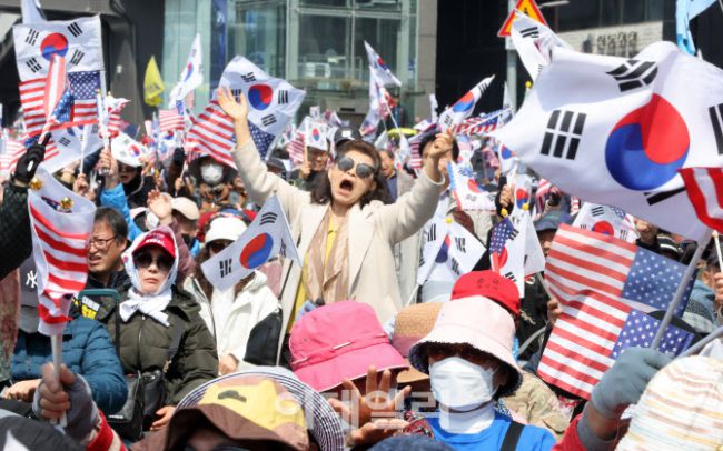 헌법재판소가 윤석열 전 대통령 탄핵을 선고한 4일 서울 용산구 한남동 관저 앞에서 탄핵에 반대한 시민들이 분노하며 소리 지르고 있다. 헌법재판소는 윤석열 전 대통령을 만장일치 의견으로 파면했다.