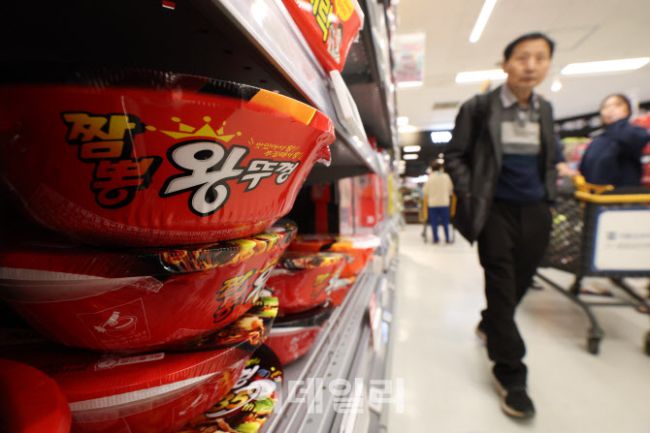 팔도가 비빔면 4.5%, 왕뚜껑 7.1%, 비락식혜 8.3% 가격 인상을 예고한 가운데 8일 오후 서울 한 대형마트에서 한 시민이 쇼핑을 하고 있다.