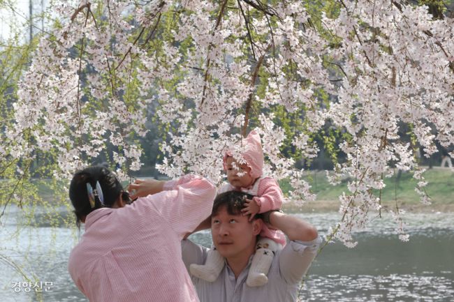 맑고 포근한 날씨를 보인 10일 경기 고양시 호수공원을 찾은 한 가족이 만개한 벚꽃 아래서 기념사진을 찍고 있다. 성동훈 기자 zenism@kyunghyang.com ▶ 매일 라이브 경향티비, 재밌고 효과빠른 시사 소화제! ▶ 주 3일 10분 뉴스 완전 정복! 내 메일함에 점선면 구독 ©경향신문(www.khan.co.kr), 무단전재 및 재배포 금지