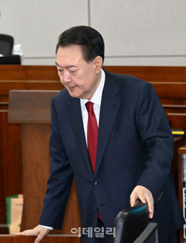 [사진공동취재단] 윤석열 전 대통령이 21일 서울 서초동 서울중앙지법에서 열린 내란 우두머리 혐의 형사재판 2번째 공판에 출석하고 있다.