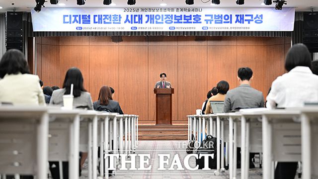 2025년 개인정보보호법학회 춘계학술대회가 '디지털 대전환 시대 개인정보보호 규범의 재구성'을 주제로 열린 가운데 25일 오후 서울 중구 은행회관에서 김도승 개인정보보호법학회 회장(가운데)이 개회사를 하고 있다. ilty012@tf.co.kr 사진영상기획부 photo@tf.co.kr 발로 뛰는 더팩트는 24시간 여러분의 제보를 기다립니다. ▶카카오톡: '더