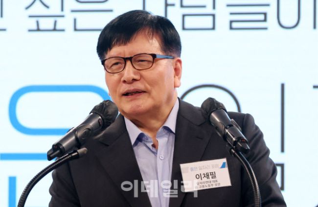 이채필 일자리연대 대표가 28일 서울 중구 KG타워에서 열린 '2025 좋은 일자리 포럼'에서 인사말을 하고 있다. 일자리연대와 이데일리·이데일리TV가 공동 개최한 '2025 좋은 일자리 포럼'은 급변하는 노동환경 속에서 지속 가능한 일자리를 어떻게 만들고 지켜나갈 것인지에 대한 사회적 해답을 모색하기 위해 마련됐다.