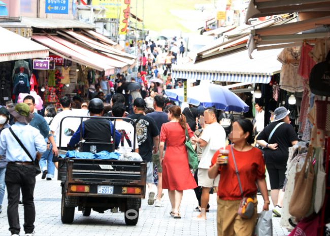 민생 회복 지원을 위한 2차 추경안이 19일 국무회의에 상정된 가운데 서울 남대문 시장에서 시민들이 이동하고 있다. 이재명 정부는 내수진작을 위해 20조원 규모의 2차 추가경정예산을 편성해 소득별로 15만원~50만원이 지급할 예정이다.