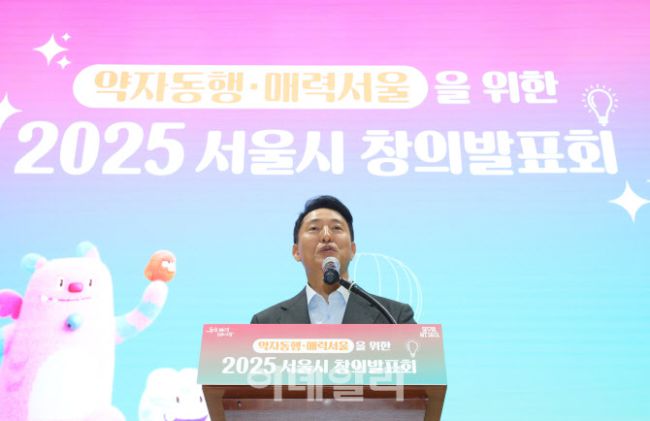 오세훈 서울시장이 25일 오전 서울 중구 서울시청에서 열린 약자동행 매력서울 창의발표회에서 인사말을 하고 있다.