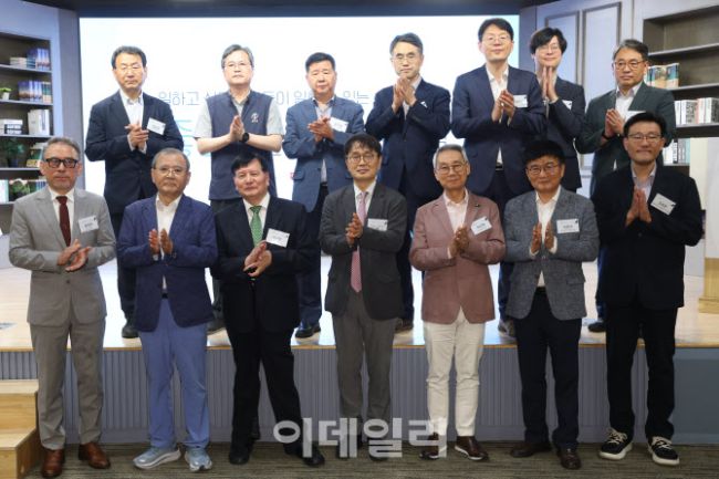 이익원 이데일리 대표, 이채필 일자리연대 대표, 함병호 한국교통대 화학물질특성화대학원 교수 등 참석자들이 26일 서울 중구 KG타워에서 열린 '2025 좋은 일자리 포럼'에서 '기념촬영을 하고 있다. 일자리연대와 이데일리·이데일리TV가 공동 개최한 '2025 좋은 일자리 포럼'은 급변하는 노동환경 속에서 지속 가능한 일자리를 어떻게 만들고 지켜나갈 것인지에