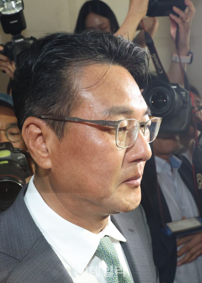 직권남용 권리행사 방해 혐의를 받는 김태효 전 국가안보실 1차장이 11일 오후 서울 서초구 순직해병 특검 사무실에서 피의자 신분으로 조사를 받기 위해 출석하고 있다. 해병대원 순직사건 관련 의혹을 수사하는 이명현 특별검사팀은 김 전 차장을 상대로 이른바 'VIP 격노설'이 불거진 2023년 7월 31일 수석비서관회의 내용 등을 집중 추궁할 예정이다.