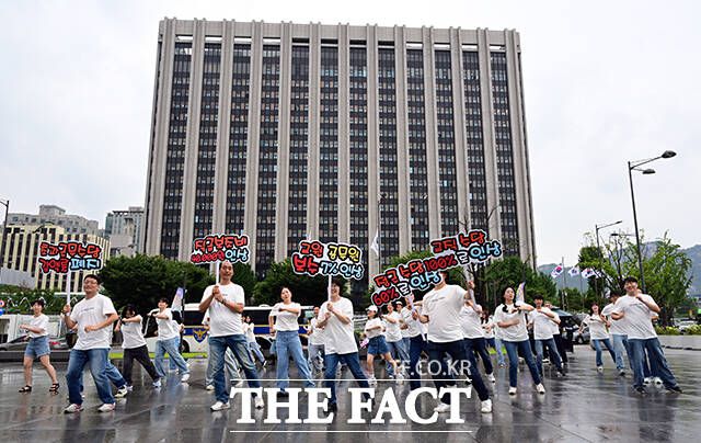 한국노총 소속 공무원 및 교사 60여명이 16일 오전 서울 종로구 정부서울청사 앞에서 공무원 보수 현실화를 촉구하는 플래시몹을 진행하고 있다. darkroom@tf.co.kr 사진영상기획부 photo@tf.co.kr 발로 뛰는 더팩트는 24시간 여러분의 제보를 기다립니다. ▶카카오톡: '더팩트제보' 검색 ▶이메일: jebo@tf.co.kr ▶뉴스 홈페이지: