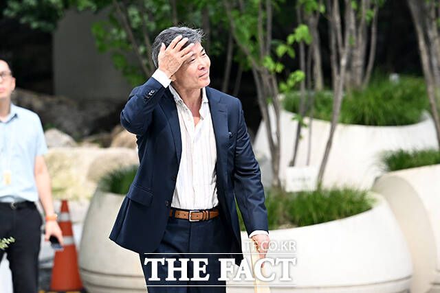 이종호 전 블랙펄인베스트 대표가 30일 오전 서울 종로구 KT광화문빌딩 웨스트에 마련된 김건희 특검 사무실로 출석하고 있다. 이 전 대표는 김 여사 측에 실제로 청탁한 사실이 있는지 묻는 취재진의 질문에 답하지 않고 사무실로 들어갔다. 특검팀은 이 전 대표가 도이치모터스 주가조작 사건의 1차 주포이자 김 여사의 계좌 관리인으로 지목된 이정필 씨에게서 202