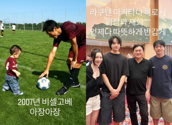 김남일 김보민 부부의 아들 서우 군의 폭풍 성장 근황이 공개됐다. 김보민은 5일 자신의 계정에 "비셀 고베 창단 30주년 레전드 매치! 2007-2025년까지 이어진 우리의 축구 이야기~ 그때 우린 젊었고, 아들은 어렸었구나~~"라는 글과 함께 여러 장의 사진을 게재했다. 사진 속에는 김남일이 과거 일본 J리그 비셀 고베에서 뛰었을 당시의 김남일, 김보민
