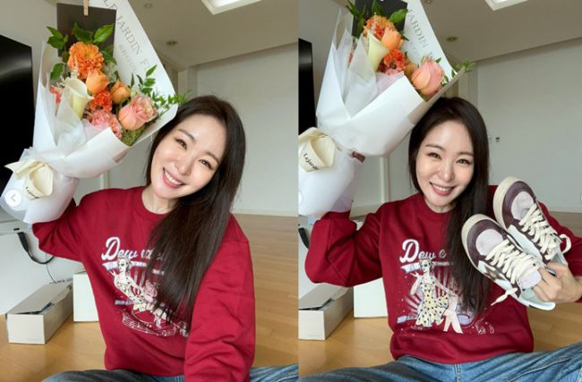 코미디언 미자가 남편 김태현에게 받은 생일 선물을 공개했다. 14일 미자는 개인 계정을 통해 "미자 축생일. 저의 42번째 생일이다. 하하"라는 글과 함께 사진과 동영상을 게재했다. 공개된 사진 속 미자는 붉은 맨투맨 차림으로 꽃다발과 새 운동화를 들고 환하게 웃고 있는 모습. 꽃과 함께 받은 운동화를 자랑하듯 들어 보이며 행복한 미소를 지었다. 그는 "이