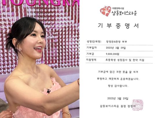 장영란, 억대 기부 행보 공개…♥남편 "늘 그렇게 살아와" [★해시태그]