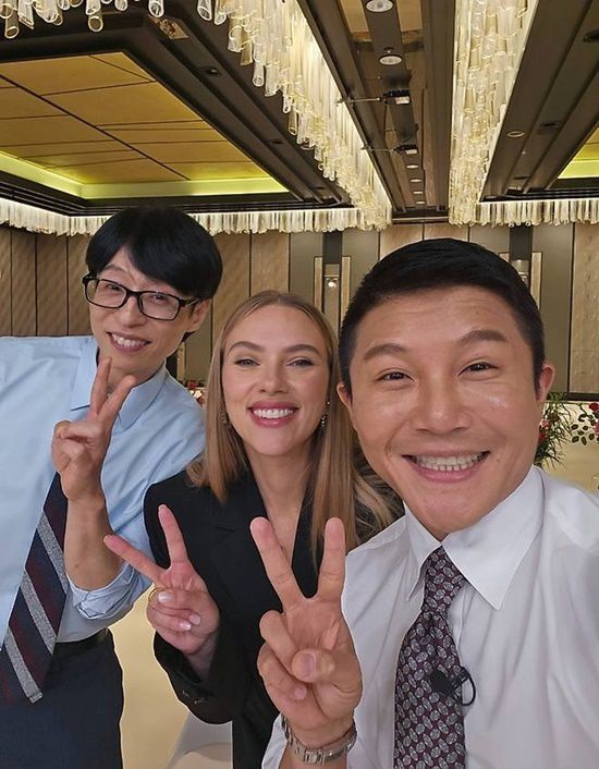 스칼렛 요한슨, 드디어 만난 유재석x조세호…"한순이 다녀갑니다" [★해시태그]