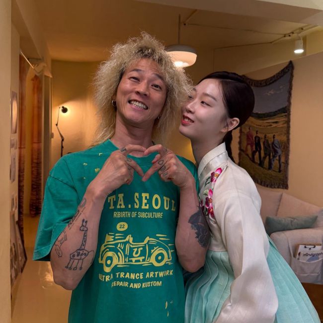 팝핀현준, 박애리 가족의 화목한 근황이 공개됐다. 팝핀현준은 5일 자신의 개인 채널에 "행복. 가족이 있어서 힘이 납니다. my queen & princess. BIG LOVE"라는 글과 함께 사진을 게재했다. 사진 속에는 화사한 민트빛 한복을 곱게 차려입은 남예술 양과, 그를 따뜻하게 감싸 안은 아버지 팝핀현준과 어머니 박애리의 모습이 담겨 있다. 팝핀현