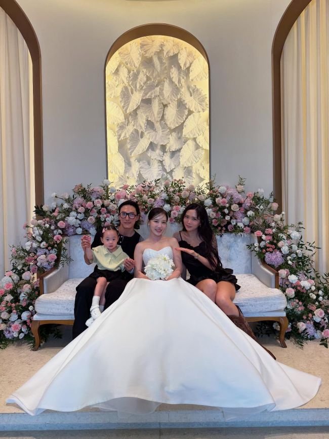 허니제이, ♥남편·딸과 홀리뱅 이븨 결혼식 참석…훈훈한 가족 [★해시태그]