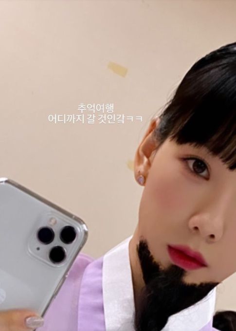 그룹 소녀시대 출신 가수 태연이 귀여운 추억여행을 공개했다. 오늘 16일 태연은 개인 인스타그램 스토리에 "무언갈 찾다가 무언갈 발견했을 때"라며 여러장의 사진을 사진을 연이어 게재했다. 사진 속에는 역대 아이폰 시리즈가 나열되어 있는 가운데 태연은 "아이폰 12만 안써봤다"라고 말했다. 이어 아이폰으로 촬영한 거울셀카 여러장을 공개했다. 사진 속에는 한복
