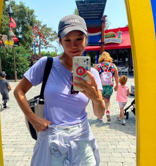 그룹 쿨 출신 유리(본명 차현옥)가 사진을 통해 근황을 전했다. 유리는 19일 자신의 인스타그램에 두 장의 사진을 업로드 하며 “여행 2일째. 오늘은 아주 쿨한 노브라 반팔 티셔츠"라고 적었다. 이날 그녀가 올린 사진을 보면, 공원에 놀러 간 모습이 담겨 있다. 사업가 사재석씨와 2014년 결혼한 유리는 슬하에 1남 2녀를 키우고 있다. 결혼과 출산 이후