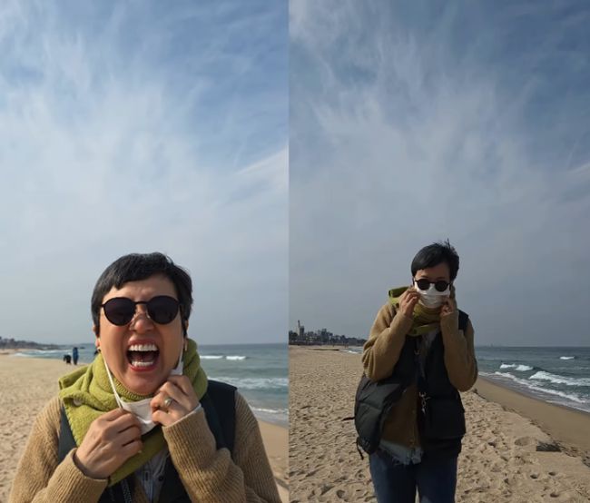 박미선. 사진| 본인 SNS 지난해 유방암 투병 소식을 전한 방송인 박미선이 강릉을 찾았다. 박미선은 17일 자신의 SNS에 “강릉여행 .... 조용하고 , 바다보니 속이 다 시원하다”라는 글을 적었다. 이날 공개된 영상 속엔 지인들과 함께 강릉을 찾은 박미선 모습이 담겨있다. 박미선은 카메라를 향해 달려와 마스크를 벗은 뒤 한껏 미소짓고 있다. 이를 본