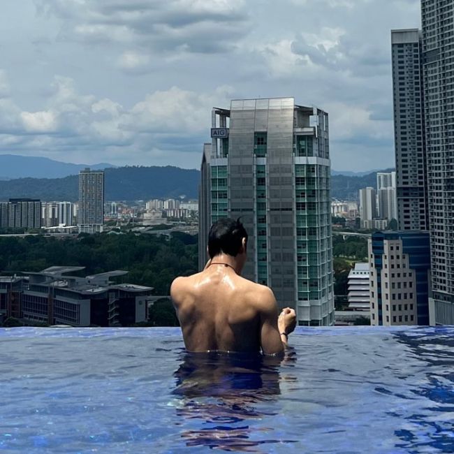 엑소 카이. 사진 | 카이 SNS 엑소 카이가 근육질 몸매를 깜짝 공개했다. 카이는 최근 자신의 SNS에 근황 사진을 게재하고 팬들에게 일상을 공유했다. 인피니티 풀에서 찍은 사진이다. 수영장 밖으로 고층 빌딩이 펼쳐진 가운데, 상의를 탈의한 채 물에 몸을 담그고 있는 카이의 뒷모습이다. 단연 시선을 잡아끄는 것은 카이의 놀라운 근육질 뒷태다. 한눈에 봐도