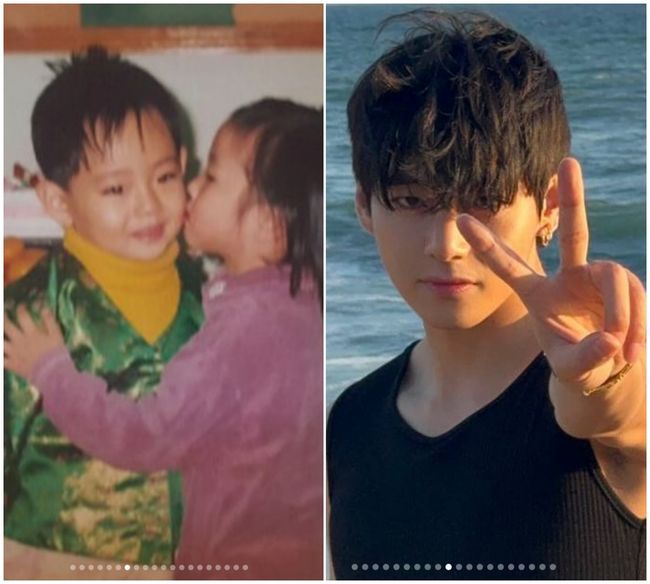 방탄소년단 뷔가 클라스가 다른 어린 시절을 공개했다. 뷔는 17일 자신의 인스타그램 계정에 “25 years later”라는 메시지와 함께 사진 여러 장을 게재했다. 자신의 어린 시절부터 방탄소년단 멤버들과 함께 본낸 시간 등을 사진에 담아 전 세계 팬들에게 공개했다. 무엇보다 어렸을 때부터 완성형 미모가 돋보인다. 뷔는 또래 친구들보다 진한 이목구비를 자