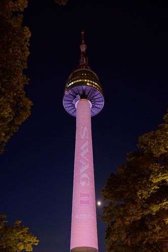 분홍빛으로 물든 남산타워 [유니버설뮤직 제공. 재판매 및 DB 금지] (서울=연합뉴스) 최주성 기자 = 팝스타 저스틴 비버가 새 앨범 발매를 기념해 서울의 랜드마크인 남산타워를 핑크빛으로 물들였다. 5일 음반사 유니버설뮤직에 따르면 비버는 전날 남산 YTN서울타워를 자기 새 앨범 '스웨그 2'(SWAG II)를 상징하는 분홍색 조명으로 밝혔다. 이날 공식
