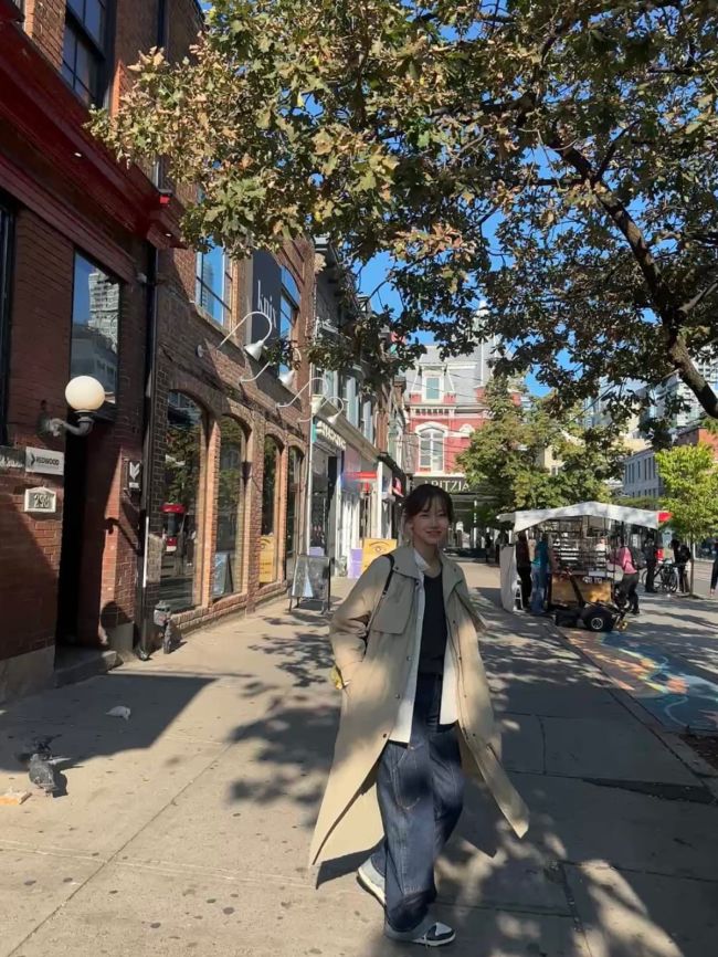 사진 = 신현빈 인스타그램 신현빈이 토론토 현지에서 트렌치코트와 레더 셋업 등 다채로운 데일리룩을 선보였다. 신현빈은 인스타그램에 "toronto 2025"라는 멘트를 남기며 사진을 올렸다. 사진 = 신현빈 인스타그램 사진에서 신현빈은 벽돌 건물과 가로수가 이어진 거리를 배경으로 베이지 트렌치코트에 와이드 데님, 스니커즈를 매치하고 여유롭게 산책하는 모습을