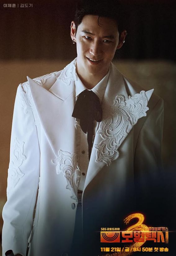 지난 12일 배우 이제훈이 자신의 인스타그램에 SBS 새 금토드라마 의 캐릭터 포스터를 공개했다. 사진 속 이제훈은 흰색 수트에 정교한 자수 디테일이 더해진 화려한 착장을 완벽하게 소화하며 극 중 김도기 역의 강렬한 분위기를 전했다. 블랙 리본 타이와 카리스마 넘치는 표정은 캐릭터의 다층적인 면모를 암시하며 기대감을 높였다. 이제훈은 "11월 21일 금요일