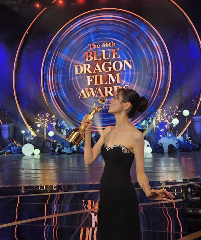 [서울=뉴시스] 배우 박지현. (사진=박지현 인스타그램 캡처) 2025.11.20. photo@newsis.com *재판매 및 DB 금지 [서울=뉴시스]신지아 인턴 기자 = 배우 박지현이 완벽한 드레스 자태를 뽐냈다. 그는 20일 소셜미디어에 "감사합니다"란 글과 함께 사진 여러 장을 올렸다. 사진 속 박지현은 상을 들고 있다. 그는 손으로 얼굴을 감쌌다.