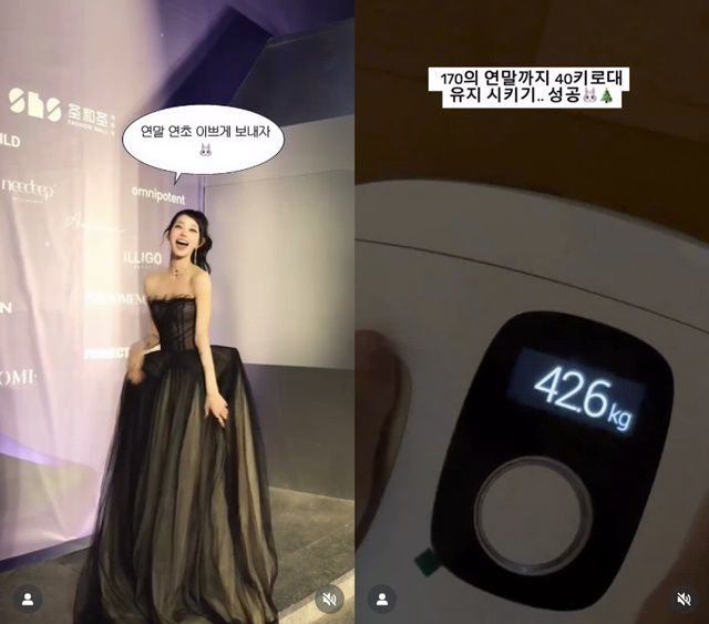 최준희 인스타그램 (서울=뉴스1) 김민지 기자 = 인플루언서 최준희가 극강의 스키니 몸매를 뽐냈다. 21일 최준희는 자신의 사회관계망서비스(SNS) 계정에 "170㎝의 연말까지 40kg대 유지 시키기… 성공"이라는 글과 함께 짧은 영상을 게재했다. 영상 속 최준희는 직접 체중계 위에 올라가 자신의 실시간 몸무게를 인증했다. 170cm인 최준희는 몸무가 42
