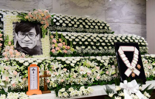 5일 별세한 배우 안성기의 서울성모병원 빈소에 금관문화훈장이 놓여 있다. [사진공동취재단] 국민 배우 안성기에 대한 추모 물결이 이어지는 가운데, 그의 장남이자 서양화가 겸 설치미술가 안다빈이 유족을 대표해 감사 인사를 전했다. 안다빈은 지난 5일 자신의 소셜미디어에 국화꽃 사진과 함께 “따뜻한 위로 진심으로 감사드립니다”라는 짧은 글을 올렸다. 부친을 떠