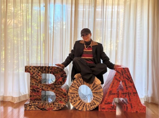 가수 보아. 보아 인스타그램 가수 보아가 소속사 SM엔터테인먼트를 떠나는 소감을 밝혔다. 보아는 12일 자신의 인스타그램에 본인의 활동명인 보아(BoA)라고 쓰인 조형물 사진을 올렸다. 해당 조형물은 '반품'과 'THANK YOU'라는 테이프로 감싸져 있다. 함께 올린 글에서 보아는 "아낌없이 주고받은 만큼, 미련 없이 떠납니다. 함께한 시간에 감사드리며,
