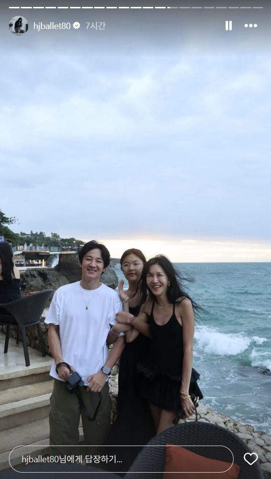 윤혜진 인스타그램 캡처 (서울=뉴스1) 정유진 기자 = 발레리나이자 인플루언서인 윤혜진이 남편 엄태웅, 딸 지온과 발리에서 찍은 사진을 올렸다. 윤혜진은 17일 자신의 사회관계망서비스(SNS) 계정에 발리에서 찍은 여러 장의 사진을 올렸다. 윤혜진 인스타그램 캡처 공개된 사진 속에서 윤혜진은 남편 엄태웅, 딸 엄지온과 함께 바다를 배경으로 나란히 서서 포즈